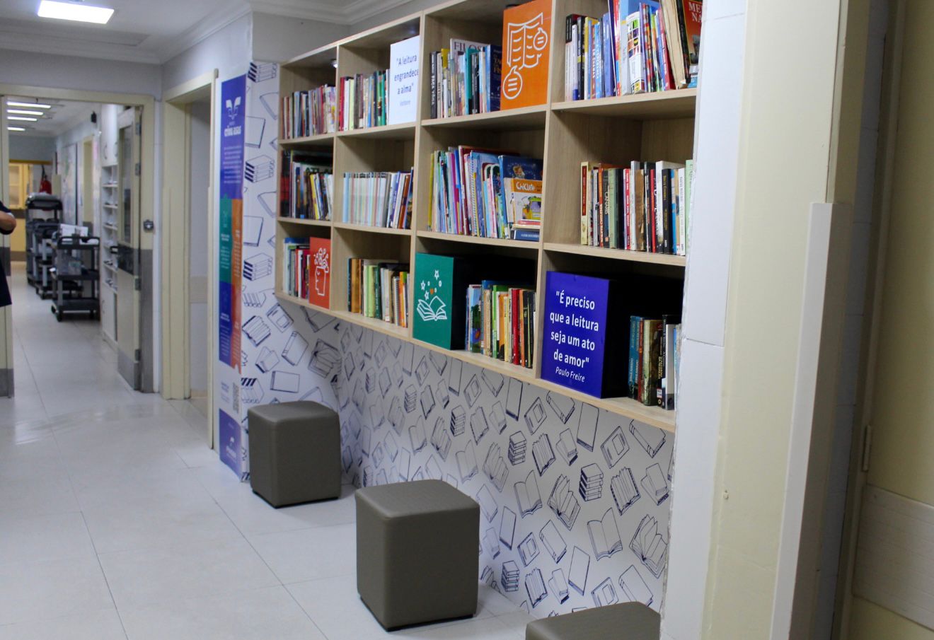 Criada em março, a biblioteca comunitária do Dom João Becker inicia campanha para o recebimento de livros. O espaço, localizado no primeiro andar do hospital, foi desenvolvido em parceria com a Finger Engenharia e Construções, dentro do projeto “Criou Asas” e está disponível para funcionários, pacientes e acompanhantes. Com a consolidação da iniciativa, a ideia agora é ampliar o acervo, recebendo doações de quem quiser contribuir.