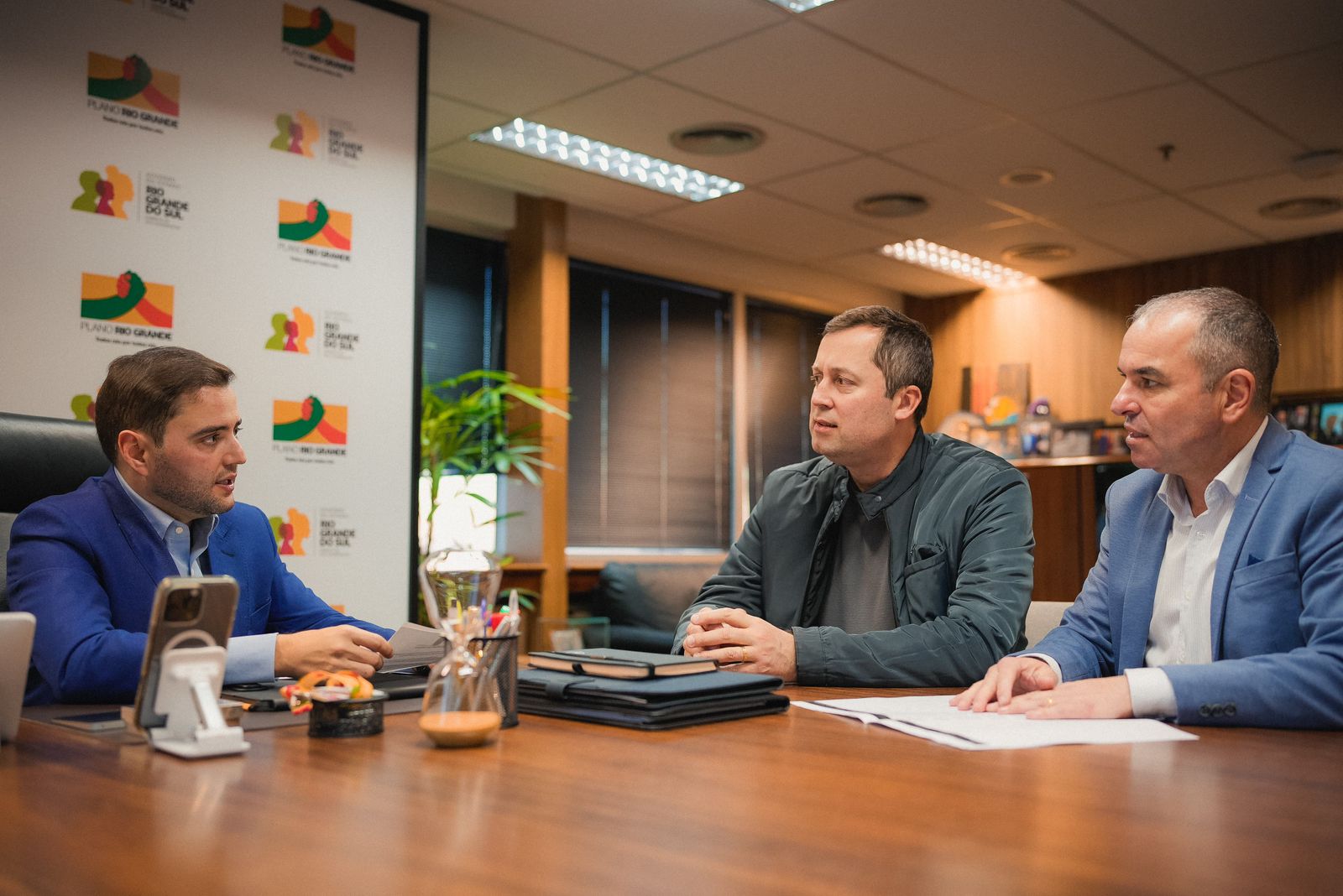 O prefeito de Cachoeirinha, Cristian Wasem e o secretário municipal de Planejamento, Paulo Garcia estiveram, nesta quarta-feira (30), com o governador em exercício do RS, Gabriel Souza, para tratar da agenda de reconstrução da cidade e a consolidação de investimentos em infraestrutura urbana resiliente.