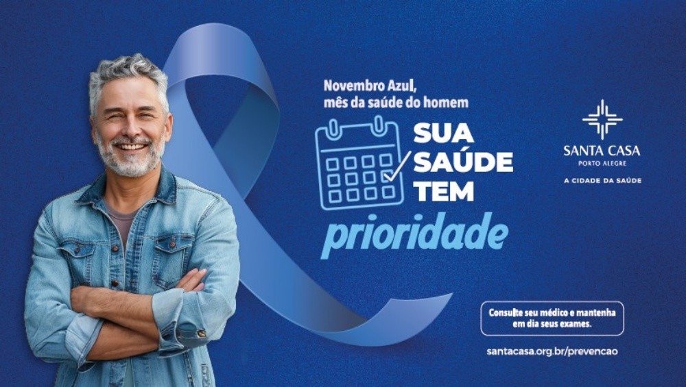A Santa Casa de Porto Alegre dá início, neste mês de novembro, à sua nova campanha de conscientização sobre a saúde do homem. Com o tema “Sua saúde tem prioridade”, a iniciativa faz parte das ações do Novembro Azul, mês dedicado à prevenção e ao diagnóstico precoce do câncer de próstata, o segundo tipo de câncer mais comum entre os homens brasileiros. Em Gravataí, o Hospital Dom João Becker também enfatiza a necessidade do autocuidado masculino.