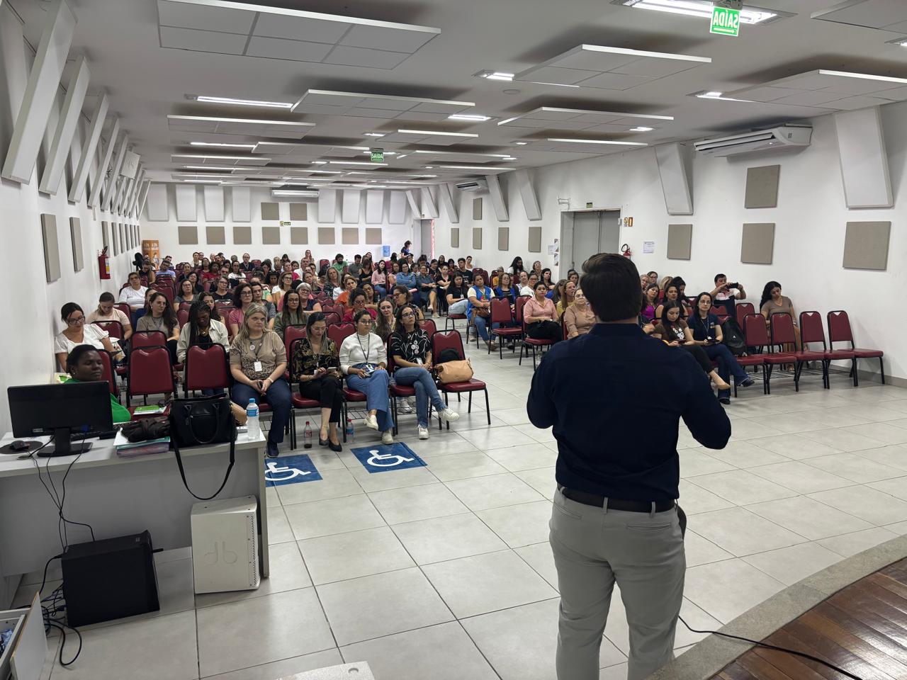 Mais de 120 profissionais de saúde e da educação estiveram reunidos nesta quinta-feira, 10, na primeira formação deste ano do Programa Saúde na Escola (PSE), iniciativa que visa aproximar unidades de saúde e instituições de ensino no fomento de ações conjuntas. Realizada no auditório da Faculdade QI, a capacitação abordou orientações ligadas ao combate à dengue e as ações voltadas à verificação da caderneta de vacinação de alunos em escolas de Gravataí.
