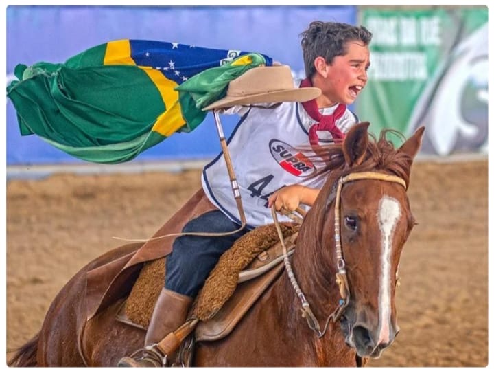 Sob orientação da equipe do CT Zick Souza, em Gravataí, o jovem ginete, morador de Canoas, venceu a prova do Freio de Ouro, montando Correlera Tape (box 16) e também levou o Freio de Prata, com Estampa das Traíras (box 13), na categoria Infantil A.