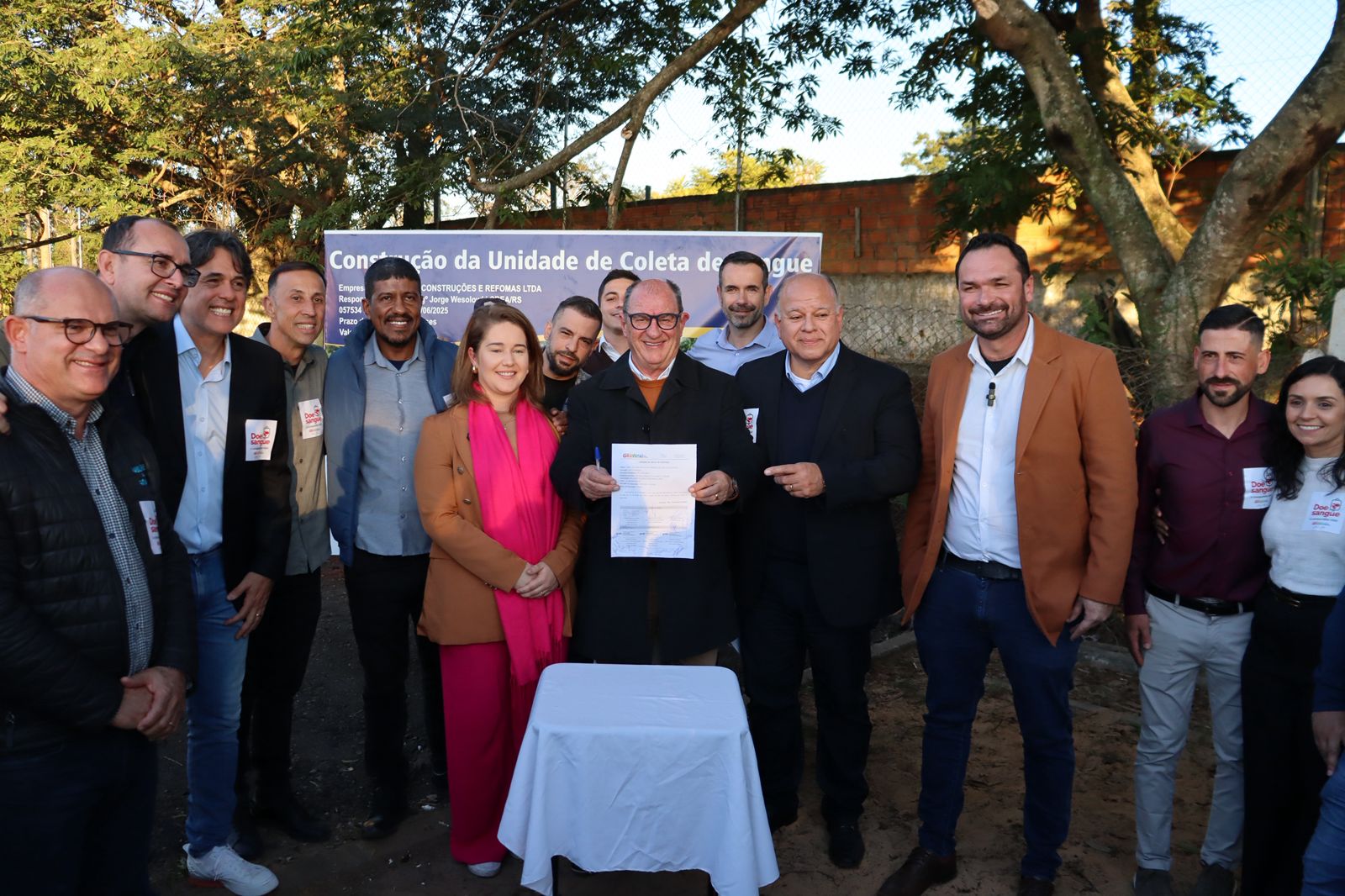 A Prefeitura de Gravataí assinou nesta sexta-feira, 13, a ordem de início para a construção da 1ª Unidade de Coleta de Sangue da história da cidade, que será executada e construída junto à UPA Abílio Alves dos Santos, na parada 74. Com investimento de R$ 852 mil, viabilizado com recursos de emenda parlamentar, o prazo de entrega da obra é de 5 meses. Na oportunidade, também foi lançada a campanha “Doe Sangue e Compartilhe Vida”, voltada ao incentivo e estímulo à doação de sangue. De iniciativa do vice-prefeito Dr. Levi Melo, a ideia é que o projeto realize ações de conscientização ao longo do ano em empresas, faculdades e espaços públicos.