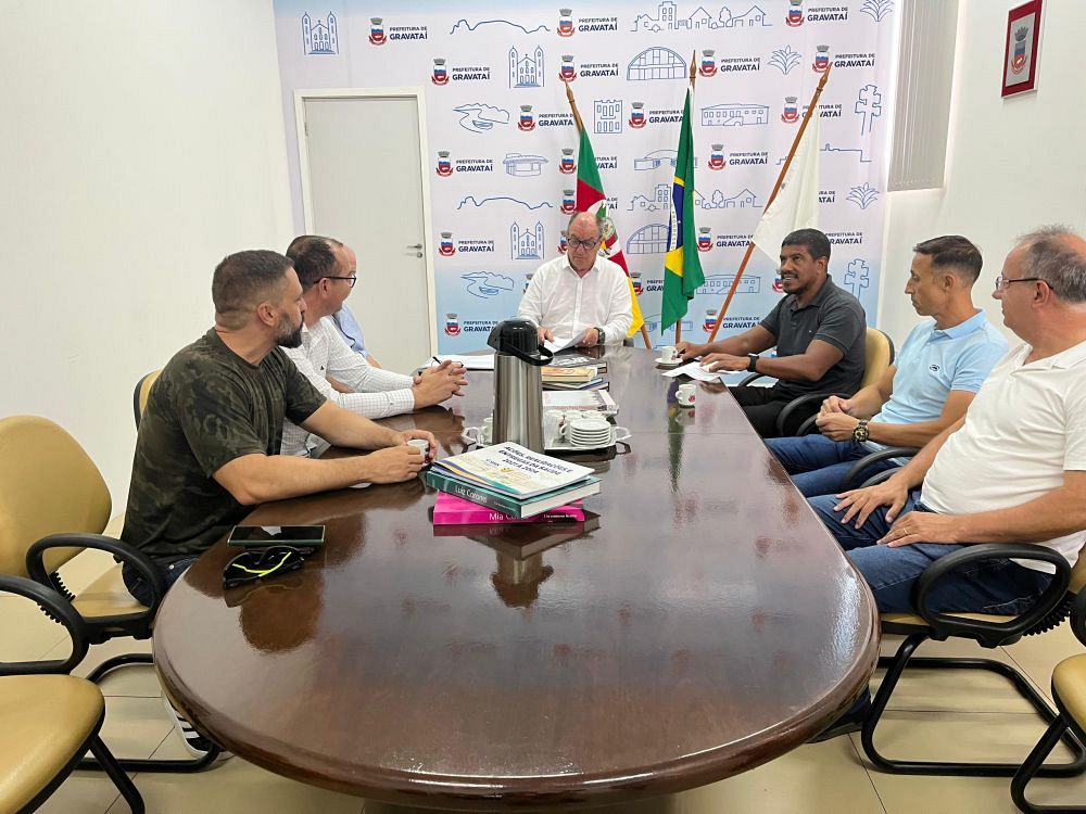 Na tarde desta quinta-feira, 27, a Câmara Municipal de Vereadores de Gravataí, por meio da Presidência do vereador Clebes Mendes, acompanhado pelos vereadores Bombeiro Batista, Guarda Moisés e Policial Evandro Coruja, esteve no gabinete do prefeito Luiz Zaffalon e do vice-prefeito Dr. Levi Melo para a apresentação do projeto que substituirá o nome da Guarda Municipal por Polícia Municipal.