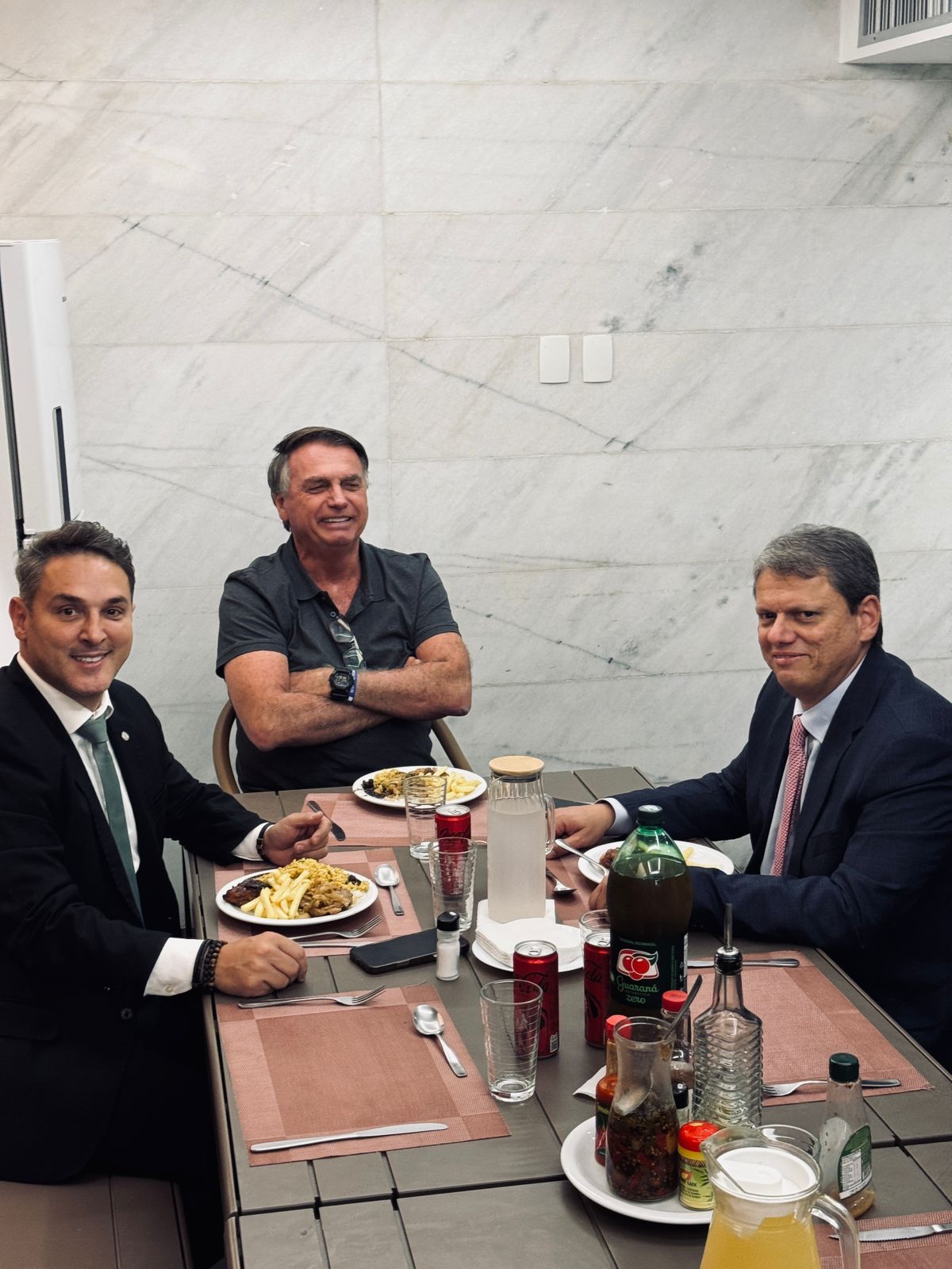 O ex-presidente Jair Bolsonaro, o governador de São Paulo, Tarcísio Gomes de Freitas, e o novo líder da oposição na Câmara, deputado federal Zucco (PL-RS), almoçaram juntos nesta quarta-feira (12), em Brasília. No cardápio, além de arroz, batata frita e carne, as perspectivas para a supereleição de 2026.